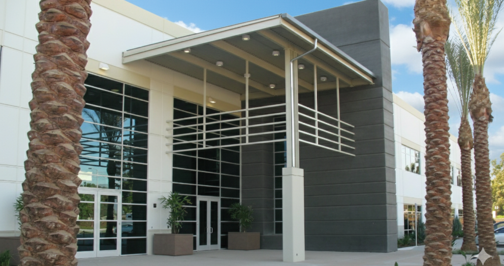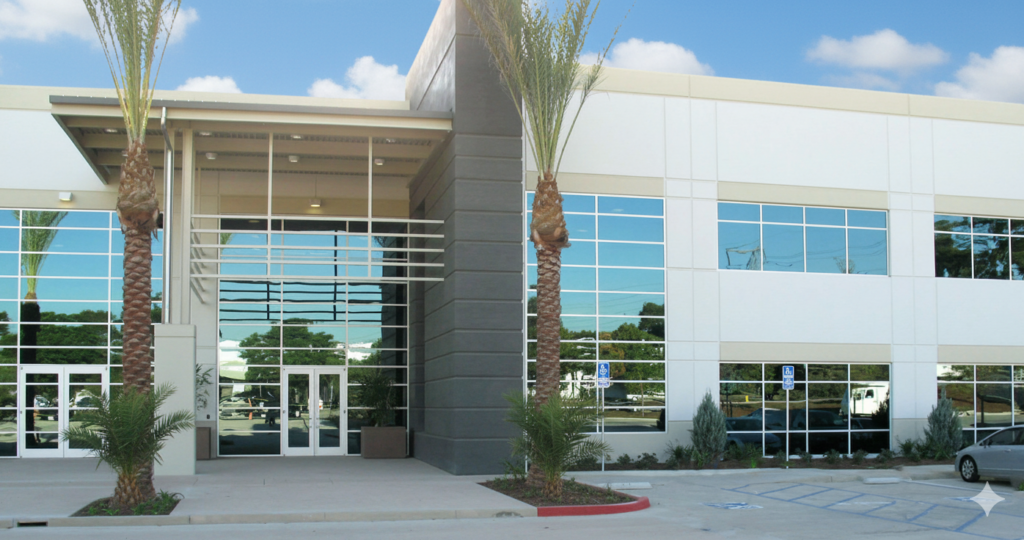 A 215,000 S.F. Caterpillar Dealership includes administrative offices, equipment and parts sales, maintenance and repair shops, and parts storage on 45 acre site.